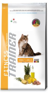 ····· lezzter Preis 1.19€ ···· Miscota Poland, Czech Republic, Greece and Hungary - Online Shop for Pet Supplies Dry Food for Cats Trainer Adult, Rabbit and Maize Trainer® Fitness Rabbit&Maize is a single-protein and hypoallergenic diet based on functional ingredients of yellow colours for the cat's total wellness.\nA highly appetizing formula made with scarcely know protein sources:\n rabbit meat as single source of animal origin;\n maize as single source of carbohydrates.\n Recommended for cats suffering from intolerance or allergies - and it is therefore an excellent alternative to the usual flavour.\nNo artificial preservatives, colourings or appetizers added\nHypoallergenic formula for cats from 1 year ····· 1042012852