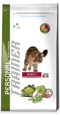 für 19.95€ kaufen ···· Miscota Poland, Czech Republic, Greece and Hungary - Online Shop for Pet Supplies Dry Food for Cats Trainer Beauty Trainer® Personal Beauty satisfies the unique necessities of cats with particular needs, using animal protein obtained from fresh meat and green functional ingredients full of antioxidants, which can help to improve intestinal functioning and enable the greater efficiency of the immune system.\nHazelnut oil is full of unsaturated fatty acids and -tocoferolo (Vitamin E), which are necessary to make fur brilliant and shiny. It is also nutritive and gives lots of energy.\nNo artificial preservatives, colourings or appetizers adde \nAdult cat aged from 1 to 7 years ····· 1042012847