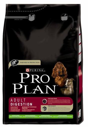 für 51.95€ kaufen ···· Miscota Poland, Czech Republic, Greece and Hungary - Online Shop for Pet Supplies Dry Food for Dogs Pro Plan Adult digest Lamb with Rice Specially formulated for sensitive adult dogsHealthy skin is vital to your dog's well being. For dogs with sensitivities, it can help to minimise the number of protein sources in the diet, so there are fewer opportunities for them to have an adverse reaction to their food.PRO PLAN Adult Sensitive has high-quality ingredients to provide limited sources of protein (salmon, corn and rice), which may be beneficial to sensitive dogs. It contains no wheat, soy or beef* in the formula all of which are more common sources of protein and thus more likely to cause adverse reactions. Made with salmon, a highly palatable coating, and without any other sources of animal protein, it helps to minimize skin discomfort that may be caused by common food sensitivities.* May contain traces.Daily Feeding RecommendationThe recommended daily amounts should be adjusted according to weather conditions (more will be consumed in cold weather if the dog lives outside), the animal's level of activity and its physical condition. Clean, fresh water should be available at all times. Keep food in a cool and dry place.Give your adult dog protectionSENSI DERMA: specially formulated with high quality ingredients, no colourants and with limited sources of protein for dogs with sensitive skin who can react more easily to multiple sources of proteinEnhanced vitamin E and C levels to help fight free radicals and support a strong immune systemSalmon as a single fish protein source for gentle digestion and to help promote food tolerance in sensitive dogsHigh quality protein, omega 3 & 6 fatty acids, vitamins and minerals to support a strong, elastic skin and a thick coat to shield him from environmental challengesIngredientsIngredients: Salmon (22%), rice (22%), dehydrated salmon protein (15%), maize, maize gluten, animal fat (preserved with mixed tocopherols), hydrolysed digest, beet pulp, purified cellulose fibre, calcium phosphate, potassium chloride, sodium chloride, minerals. Cupric sulphate (copper = 12 mg/kg), zinc sulphate (zinc = 180 mg/kg). Antioxidant: tocopherol rich extracts of natural origin.Vitamin A: 21000 IU/KgVitamin D3: 1600 IU/KgVitamin E ( tocopherol): 280 mg/KgVitamin C (ascorbic acid): 70 mg/Kg ····· 104202631