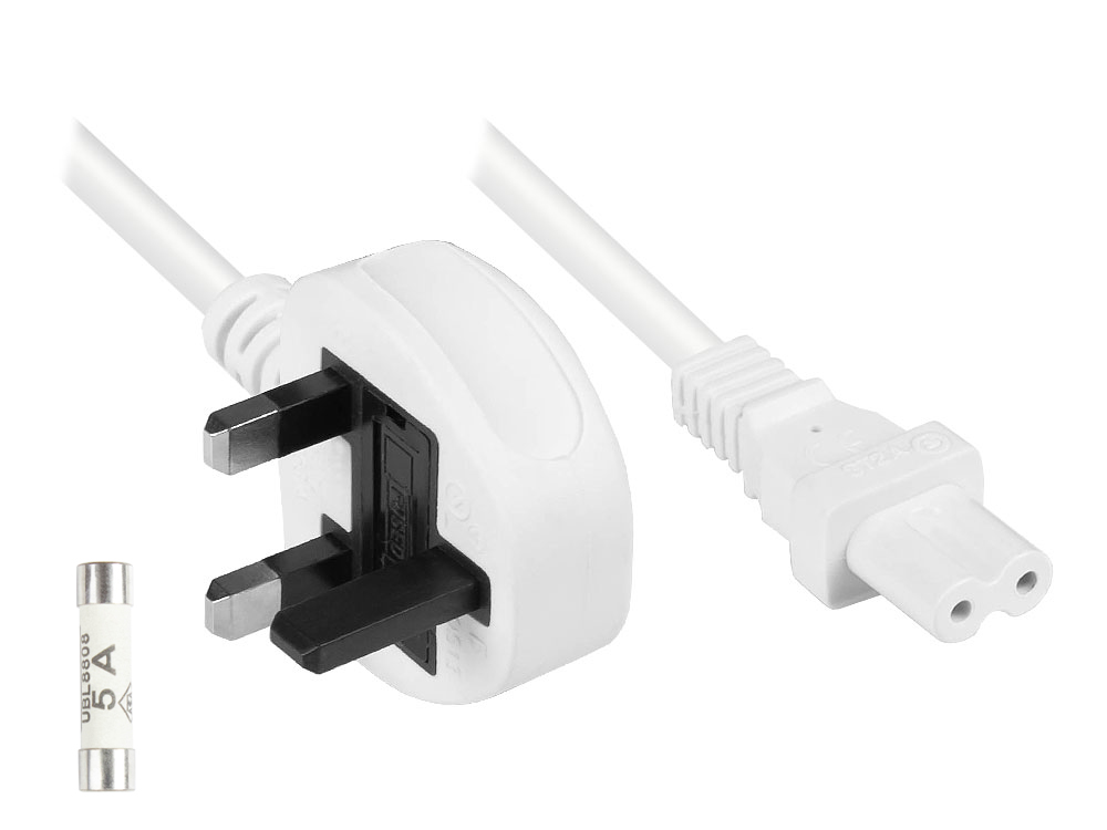 Netzwerkartikel.de - Kabelshop Netzkabel England/UK Netz-Stecker Typ G (BS 1363) an C7/Euro 8 Buchse (gerade), 5A Sicherung, wei, ····· ····· ····· ····· ····· ····· ····· ····· ····· ····· ····· ····· ····· 103136985