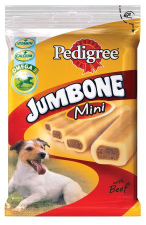 Miscota Poland, Czech Republic, Greece and Hungary - Online Shop for Pet Supplies Chewy and Softer Treats for Dogs Pedigree Jumbone Mini The perfect longer lasting treat for your dog. Jumbone® cleverly combines a hard chewy outer with a delicious meaty centre something he can really get his teeth into. PedigreeJumbone® is available in a range of sizes to suit every dog and appetite.Product Features-Omega 3 to help keep him fit for life-Calcium to help give him strong teeth & bones-Vitamins and Minerals to help maintain his natural defences-Varieties and Range-Available in 2 flavours - Beef and Chicken & Rice-And 3 sizes Mini, Medium and Maxi ····· 1042011074
