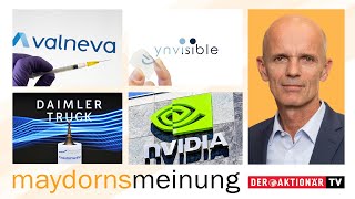 für € kaufen ···· DER AKTIONÄR TV Weitere Videos findet Ihr unter: https://www.deraktionaer.tv\n\nIn Maydorns Meinung analysiert Börsenexperte Alfred Maydorn die neuesten Entwicklungen der beliebtesten Aktien deutscher Anleger und versieht sie mit seiner persönlichen Meinung. \n\nIn dieser Ausgabe geht es um den Nasdaq, Nvidia, Valneva, Plug Power, Daimler Truck, Tesla, BYD, Standard Lithium, Varta und Ynvisible.\n\n00:00 Intro \n00:30 Nasdaq 100\n02:20 Nvidia\n03:25 Valneva\n05:55 Plug Power\n06:45 Daimler Truck\n08:01 Tesla\n10:33 BYD\n12:41 Standard Lithium\n14:17 Varta\n15:44 Ynvisible\n \nMaydorns Meinung gibt es auch als täglichen Newsletter. Wenn Sie auch von Montag bis Donnerstag über spannende Börsenthemen und aussichtsreiche Aktien auf dem Laufenden bleiben wollen, tragen Sie sich einfach auf www.maydornreport.de in den Verteiler ein.\n\n-----\n\n►► Folgt uns hier:◄◄\n🎭 Facebook: https://de-de.facebook.com/aktionaer/\n🐦 Twitter: https://twitter.com/aktionaer\n📷 Instagram: https://www.instagram.com/deraktionaer/\n🎬 TikTok: https://www.tiktok.com/@einfachboerse?\n\nZufrieden? Bewertet uns auf Google!\nhttps://g.page/r/CWZ1FzK_GJjdEAg/review\n\nHier bekommt Ihr den AKTIONÄR: https://www.boersenmedien.de/deraktionaer/1\n\nUnsere „AKTIONÄR?-Tassen findet Ihr hier im Shop: https://www.boersenmedien.de/merchandise/1 ····· 111502138