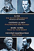 ····· lezzter Preis 9.99€ ···· Rheinberg-Buch.de - Bücher, eBooks, DVD & Blu-ray Die hier versammelten Werke von Sunzi, Niccolò Machiavelli, Gustave Le Bon und Marc Aurel gelten auch heute noch als Leitfäden für Personalführung, Strategie und Menschenkenntnis. Sunzi: Die Kunst des Krieges: Vor mehr als 2.500 Jahren verfasst, erfreut sich dieses kleine Handbuch der Kriegführung nach wie vor großerBeliebtheit. Niccolò Machiavelli: Der Fürst: In seiner Radikalität, in seiner scharfen Trennung zwischen rein politischem Handeln und den Entscheidungen des Einzelnen überstrahlt Machiavellis Werk die politiktheoretischen Schriften aller seiner Zeitgenossen. Gustave Le Bon: Psychologie der Massen: Dieses Grundlagenwerk der Sozialpsychologie beeinflusste nicht nur Sigmund Freud, sondern wurde auch von Politikern und Diktatoren des 20. Jahrhunderts für die Ausarbeitung ihrer Propagandatechniken benutzt. Marc Aurel: Wege zu sich selbst: Von zeitlos klassischem Rang ist die Besinnung auf das richtige Handeln und das gute Leben, die der römische Kaiser in seinen nahezu zweitausend Jahre alten Aufzeichnungen, den `Selbstgesprächen`, festgehalten hat. ····· 10361178565