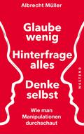 ····· lezzter Preis 14.00€ ···· Rheinberg-Buch.de - Bücher, eBooks, DVD & Blu-ray Demokratie klingt schön. Tatsächlich wird sie täglich ausgehöhlt. Wir alle werden ständig bedrängt zu denken, was andere uns vorsagen. Die meisten politischen Entscheidungen werden unter dem Einfluss massiver Propaganda getroffen - von der Agenda 2010 bis zu den neuen Kriegen. Dieses Buch hilft, sich aus dem Gestrüpp der Manipulationen zu befreien. Albrecht Müller beschreibt gängige Methoden der Manipulation sowie Fälle gelungener oder versuchter Meinungsmache und analysiert die dahintersteckenden Strategien. Es ist an der Zeit, skeptischer zu werden, nur noch wenig zu glauben und alles zu hinterfragen. Es ist Zeit, wieder selbst zu denken. ····· 10361154009