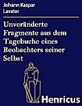 für 2.99€ kaufen ···· Rheinberg-Buch.de - Bücher, eBooks, DVD & Blu-ray Lavater, Johann Kaspar: Unveränderte Fragmente aus dem Tagebuche eines Beobachters seiner Selbst oder des Tagebuches Zweyter Theil, nebst einem Schreiben an den Herausgeber desselben. Leipzig: Weidmanns Erben und Reich, 1773 (Nachdruck Bern, Stuttgart: Paul Haupt, 1978). Erstdruck: Leipzig (Weidmanns Erben und Reich) 1773. ····· 1036113747