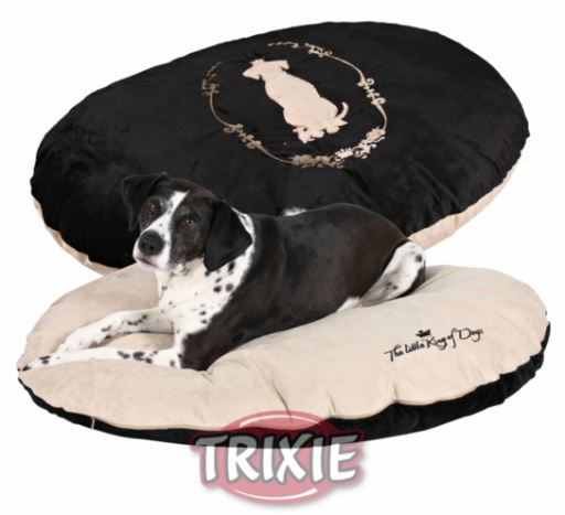 für 21.95€ kaufen ···· Miscota Poland, Czech Republic, Greece and Hungary - Online Shop for Pet Supplies Matresses and Cushions for Dogs Trixie Dog mattress, King of Dogs, heart shaped - Cover soft plush/suede-look\n- Polyester cover\n- 4 cm polyester fleece filling\n- Pillow with soft plush cover: washable by hand up to 30 °C\n- With stylish King of Dogs embroidery\n- Size: 70 × 60 cm\n- Colour: black\n ····· 104209235