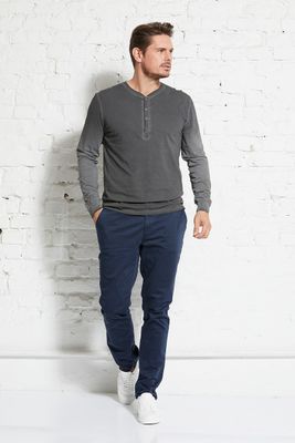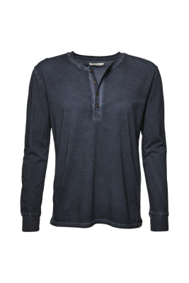 ····· 1038641Das vintage wunderwerk-Henley mit langen Ärmeln ist perfekt für etwas frischere Tage. Das locker geschnittene Langarmshirt aus hochwertigem Single Jersey mit gerippten Ärmelbündchen hat den für den Henley-Stil typischen Kragen und die halbe Knopfleiste. Die angesagte mal tinto Waschung entstand in einem aufwändigen Färbe-Verfahren, bei dem das Kleidungsstück als Ganzes gefärbt wird.