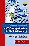 ····· lezzter Preis 14.35€ ···· Rheinberg-Buch.de - Bücher, eBooks, DVD & Blu-ray Wie erreicht man schnell pflegebedürftige, immobile Bewohner Mit dem Gedächtnistraining aus der Kitteltasche! Ideal für das Gespräch zwischendurch, für die individuelle Ansprache einzelner Bewohner, für die vergnügliche Gruppenstunde. Jede Karte beschreibt eine Aufgabe: Vom Liederwettbewerb über das Reimen bis hin zu Übungen fürs Auge, den Hör- und Tastsinn. So lassen sich die Karten jederzeit gezielt - ohne Vorbereitung - einsetzen. Die schwierigen Übungen für kognitiv fitte alte Menschen, sehr leichte Aufgaben für Menschen mit leichter oder mittelgradiger Demenz. ····· 10361163011