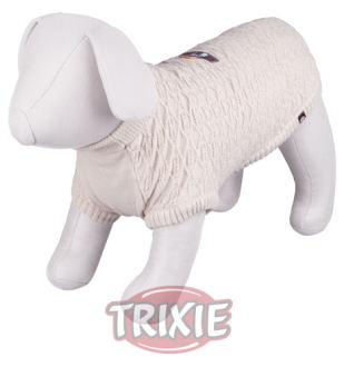 Miscota Poland, Czech Republic, Greece and Hungary - Online Shop for Pet Supplies Sweaters for Dogs Trixie Jersey Versilia - With polo neck and reinforced hem\n- Perfect fit due to tailored seams\n- With fashionable detail on back\n- Loops for hind legs\n- Made of synthetic wool\n- Size: L 54 cm\n- Length: 55 cm\n- Colour: beige\n ····· 104205450