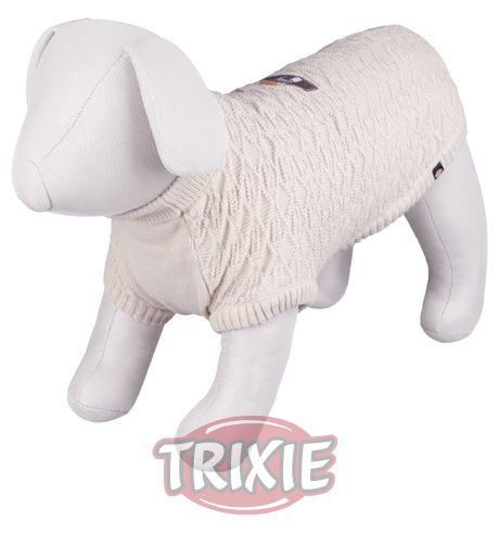Miscota Poland, Czech Republic, Greece and Hungary - Online Shop for Pet Supplies Sweaters for Dogs Trixie Jersey Versilia - With polo neck and reinforced hem\n- Perfect fit due to tailored seams\n- With fashionable detail on back\n- Loops for hind legs\n- Made of synthetic wool\n- Size: S 44 cm\n- Length: 40 cm\n- Colour: beige\n ····· 104205447