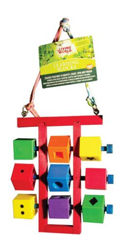für 10.95€ kaufen ···· Miscota Poland, Czech Republic, Greece and Hungary - Online Shop for Pet Supplies Toys for Birds Hagen L.W BLOQUES DE APRENDIZAJE 15X18 cm Living World® Learning Blocks is a safe educational and foraging toy for small, medium & large hookbills. Created to stimulate pet birds, it helps in teaching shape identification, counting, spinning and foraging. Geometric-shaped openings in the blocks are an ideal place to hide special treats such as Tropican Biscuits. Learning Blocks can also be used as a tabletop toy to encourage interactive play between you and your pet bird. Manufactured using food-grade colorants only, Learning Blocks is safe for birds to chew on. It comes with a secure, nickel-plated C-clamp that attaches safely to the cage. Learning Blocks is approximately 18 cm (7 1/2 inches) wide and 40 cm (16 1/2 inches) long. ····· 104201580
