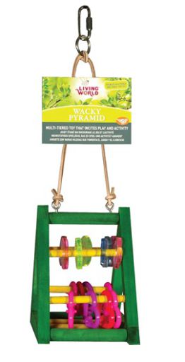 für 12.06€ kaufen ···· Miscota Poland, Czech Republic, Greece and Hungary - Online Shop for Pet Supplies Toys for Birds Hagen L.W PIRAMIDE LOCA 18X15 cm Living World® Wacky Pyramid is a multi-purpose, interactive toy for birds. The unique, 3-sided wooden pyramid structure with 16 colorful acrylic/plastic mobile stars, flowers and circles, as well as 6 large wooden beads encourage birds to spin, chew & play. The multi-tiered pyramid promotes play and beneficial activity, such as exercise, climbing & spinning. Wacky Pyramid also doubles as a perch and provides a practical way to weigh birds. You can hang the pyramid in the cage or use it as a tabletop toy. It has a hanging length of approximately 45 cm (18 inches) and can be attached safely to the cage with a bird-safe, nickel-plated C-clamp and hangs from a leather strap. Made with food-grade colorants only, Wacky Pyramid is completely safe for bird to chew. The medium size is made specifically for medium and large hookbills. ····· 104201582