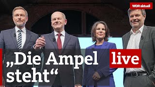 für € kaufen ···· WDR aktuell Ampel-Koalition: Knapp zwei Monate nach der Bundestagswahl 2021 steht der Koalitionsvertrag – und damit die Verteilung der Ministerien. Die Spitzen von SPD, Grünen und FDP stellen die Ergebnisse der Koalitionsverhandlungen heute (24.11.2021) in einer Pressekonferenz vor. Bis zuletzt hatte es strittige Punkte in der Finanz- und Klimapolitik sowie in der Zuteilung der Ministerien gegeben. Wer die Ministerien führen werde, soll zu einem späteren Zeitpunkt bekannt gegeben werden. Der Koalitionsvertrag muss im Anschluss noch von den Gremien der drei Parteien bestätigt werden. \n\nWir streamen die Pressekonferenz für euch live aus dem WDR Newsroom. \n\n_____________________________________________\n\n► DIE THEMEN:\n00:00:00 Warteraum eröffnet\n00:04:39 WDR-Moderatorin Liz Shoo begrüßt zum Livestream\n00:07:18 Begrüßung von WDR-Reportern Philipp Menn und Philipp Isterewicz\n00:13:55 Beginn der Pressekonferenz: Koalitionsvertrag, was steht drin?\n00:54:08 Fragen aus dem Publikum \n01:10:16 Wer bekommt welches Ministerium? \n01:17:47 Wann wird Cannabis legalisiert?\n01:20:21 Wie sieht es mit der Kindergrundsicherung aus?\n01:22:21 Wen haben die jungen Wähler:innen gewählt?\n\n_____________________________________________\n\n► IMMER INFORMIERT BLEIBEN:\n\nDie WDR aktuell App bietet euch den ganzen Tag über wichtige Infos für NRW. Hier geht's zum Download: \nhttps://www1.wdr.de/nachrichten/wdr-aktuell-app-stores-100.html?wt_mc=youtube.wdr_aktuell.infobox.link.nr \n\nUnser Morgen-Podcast 0630 sortiert euch montags bis freitags ab halb sieben die wichtigsten Themen des Tages: https://www.wdr.de/0630?wt_mc=youtube.wdr_aktuell.info.nr\n\nWir im Netz: https://www.wdraktuell.de \nTwitter: https://twitter.com/WDRaktuell \nFacebook: https://www.facebook.com/wdraktuell/ \nImpressum: http://wdr.de/k/Impressum\n\n_____________________________________________\n\nIm Kanal #WDRaktuell findet Ihr täglich neue #Nachrichten und Hintergrund-Berichte - vor allem zu politischen und gesellschaftspolitischen Themen. Unsere Videos stammen meist aus den TV-Sendungen WDR aktuell, Aktuelle Stunde und WDR extra. \n\nDer Beitrag wurde am 24.11.2021 ausgestrahlt und gibt den Nachrichtenstand zu diesem Zeitpunkt wieder. Das Video wurde seitdem nicht aktualisiert. ····· 10790663