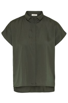 ····· 10386387Heute mal ein Hemd? Oder doch lieber eine Bluse? Warum nicht beides?! Dieses Trend-Piece vereint die Lässigkeit eines klassischen Hemdes mit der Eleganz einer edlen Bluse. Die hochwertige Eco-Faser TENCEL sorgt dabei nicht nur für maximalen Tragekomfort und einen weichen, seidigen Fall, sondern ist dazu noch vollständig biologisch abbaubar. Besondere Eyecatcher sind die halbe Knopfleiste, die kurzen Ärmel sowie die asymmetrischen, seitlich geschlitzten Abschlüsse.