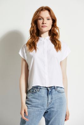 ····· 103861244Unsere TENCEL square blouse ist genau das richtige für einen minimalistischen, aber gleichzeitig trendorientierten Style. Sie hat einen kleinen Kragen und leicht fallende Ärmel. Zudem liegt sie mit dem kürzeren Schnitt und dem wide fit voll im Trend. Unser Model trägt Größe S.