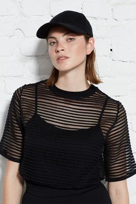 Ein ganz besonderer Hingucker ist die Striped lace T-blouse mit transparenten Streifen. Die kastig geschnittene Bluse lässt dezent darunterliegende Lagen hervorblitzen und lässt sich somit leicht mit schlichten Tops und Kleidern kombinieren. Sehr edel durch die zarte, transparente Seide. Wir empfehlen eine Nummer größer zu nehmen.