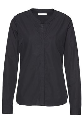 Diese Bluse überzeugt durch den Henleykragen mit durchgehender verdeckter Knopfleiste und den leicht tailliert geschnitten abgerundeter Saum. Detailverliebte finden an den langen Ärmeln edle Manschetten. Unser Model trägt Größe S