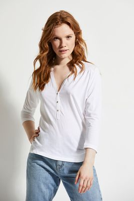 ····· ····· ····· ····· ····· ····· ····· ····· 10386955Typisch Henley... Die weich fließende Bluse hat alle für den eleganten Henley-Stil unverkennbaren Merkmale: Von dem anliegenden Henley Kragen, über die Knopfleiste bis hin zu den Paspeln aus TENCEL. Die Bluse ist leicht tailliert und schmal geschnitten - perfekt, um sie zu edlen Shorts oder lässigen Boyfriend-Jeans zu kombinieren.