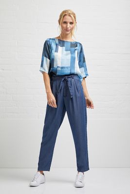 ····· 103861780Mit ihrem klaren Schnitt und dem edlen Material liegt die Tencel tee blouse ganz im Pure chic-Trend. Das Shirt hat kurze Ärmel, ist gerade geschnitten und hat einen rückseitigen Reißverschluß aus deutscher Manufaktur. Hinten ist es länger als vorn. Die hochwertige Ecofaser Lyocell (TENCEL) sorgt nicht nur für den weichen, fließenden Fall, einen seideigen Griff und maximalen Tragekomfort, sondern ist als ökologische Regeneratfaser besonders umweltfreundlich.
