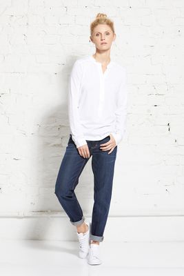 Typisch Henley... Die weich fließende Bluse hat alle für den eleganten Henley-Stil unverkennbaren Merkmale: Von dem anliegenden Henley Kragen, über die Knopfleiste bis hin zu den Paspeln aus TENCEL. Die Bluse ist leicht tailliert und schmal geschnitten - perfekt, um sie zu edlen Shorts oder lässigen Boyfriend-Jeans zu kombinieren.