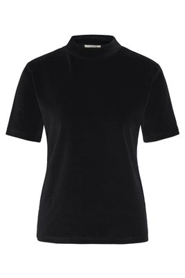 ····· 10386629Dieses körpernah geschnittene Top aus angesagtem Nicki punktet mit seinen kleinem Stehkragen und den kurzen Ärmeln. Der samtig kuschelige Stoff aus 100% Biobaumwolle sorgt für Wärme, auch an kühleren Tagen. Das Top lässt sich vielseitig kombinieren und ist auch ist auch am Abend ein echtes Highlight. Unser Model trägt die Größe S.
