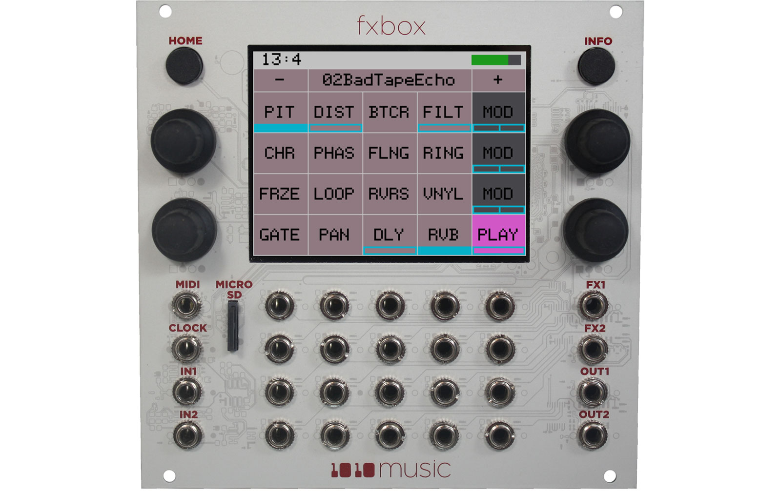 für 584€ kaufen ··· 107597 ··· 1013815026 ··· Digitales Herz - Analoge Seele: Die 1010 Music fxbox bietet Ihnen auf 26TE Eurorack-Space ganze 16 gleichzeitige Echtzeiteffekte für Ihre Performance. Hersteller: 1010music Marke: EAN: 0857665007024 Kat: FX & Soundprozessoren > Psychoakustik FX Lieferzeit: kurzfristig lieferbar, Lieferzeit 3-5 Werktage Versandkosten: 4,00 Icon: https://musicandmorestore.de/out/pictures/generated/product/1/87_87_75/107597-1.jpg Bild: https://musicandmorestore.de/out/pictures/master/product/1/107597-1.jpg 1010music fxbox: Steuern und modulieren Sie die Effekte direkt am Touchscreen und mit den wertigen Drehreglern oder nutzen Sie die Triggerinputs und MIDI als Eingabequelle. Der Touchscreen kann dabei auch bequem als XY-Pad zur Parametersteuerung eingesetz 14: 1010music 15: 1608633363 16: # 17: 0 18: ##### 19: https://musicandmorestore.de/out/pictures/master/product/1/107597-1.jpg 20: 1010music fxbox: Steuern und modulieren Sie die Effekte direkt am Touchscreen und mit den wertigen Drehreglern oder nutzen Sie die Triggerinputs und MIDI als Eingabequelle. Der Touchscreen kann dabei auch bequem als XY-Pad zur Parametersteuerung eingesetz 21: 22: # 23: 1010music fxbox 24: 1010music fxbox 25: