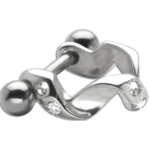 316L Barbell 1.2x6m mit 925 Sterling Silberdesign klaren Kristallen. Das Piercing kann an der rechten und linken Ohrmuschel (Helix) getragen werden.