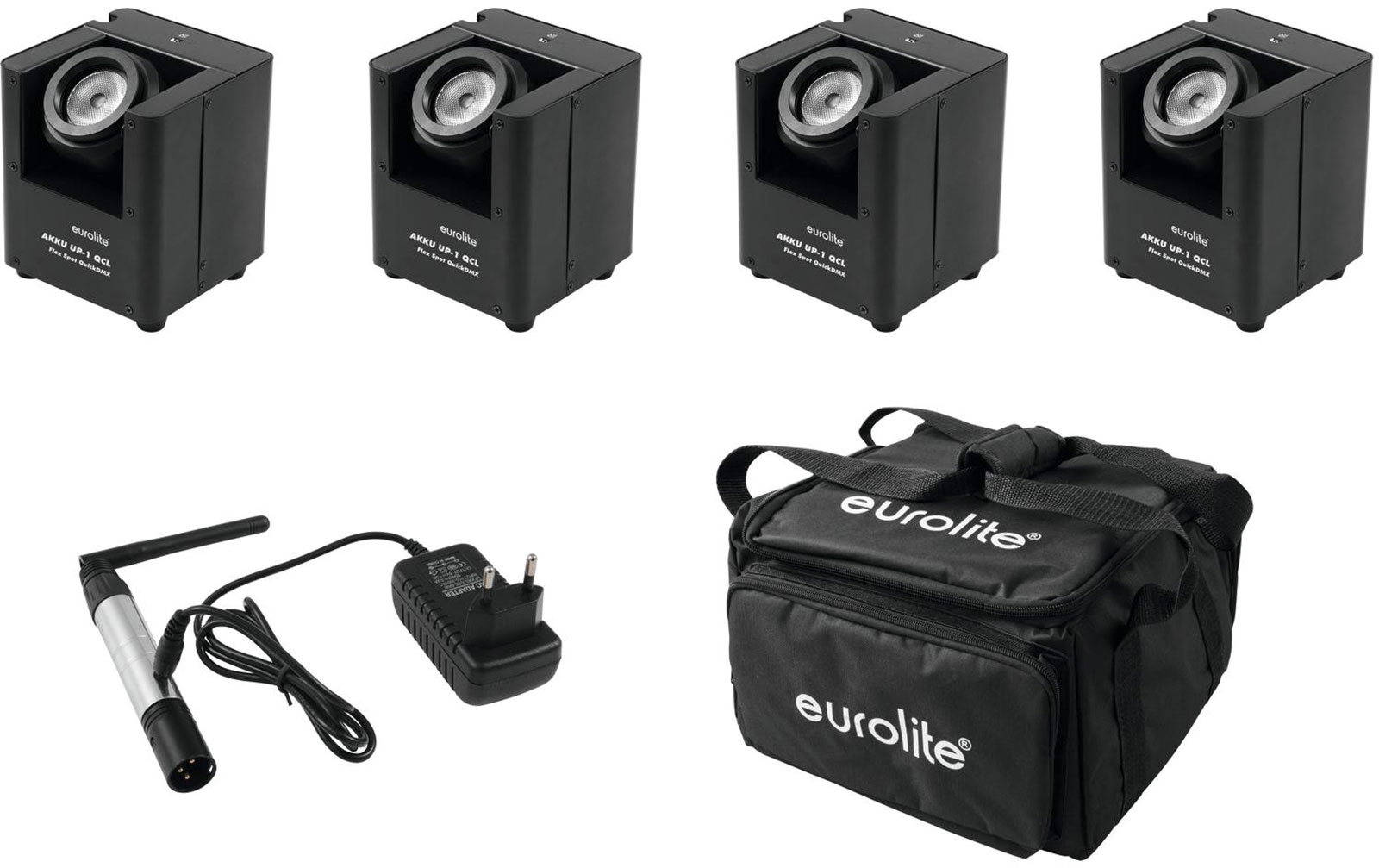 20: Eurolite Set 4x AKKU UP-1 + SB-4 Soft-Bag + QuickDMX Funksender: Set bestehend aus:4x 41700505: EUROLITE AKKU UP-1 QCL Flex Spot QuickDMX 1x 30130501: EUROLITE SB-4 Soft-Bag 1x 70064700: EUROLITE QuickDMX Funksender 41700505 EUROLITE AKKU UP-1 QCL Flex Sp