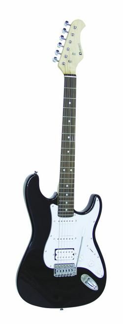 20: Dimavery ST-312 E-Gitarre, schwarz: Features: ST-FormFarbe: schwarzFinish: hochglänzendKonstruktion: geschraubter Ahorn-HalsGriffbrett: Palisander, 22 BündeKorpus: LindePickups: 2 x Single Coils + 1 x HumbuckerRegler: 1 x Volume, 2 x TonPU-Schalter: 5-f