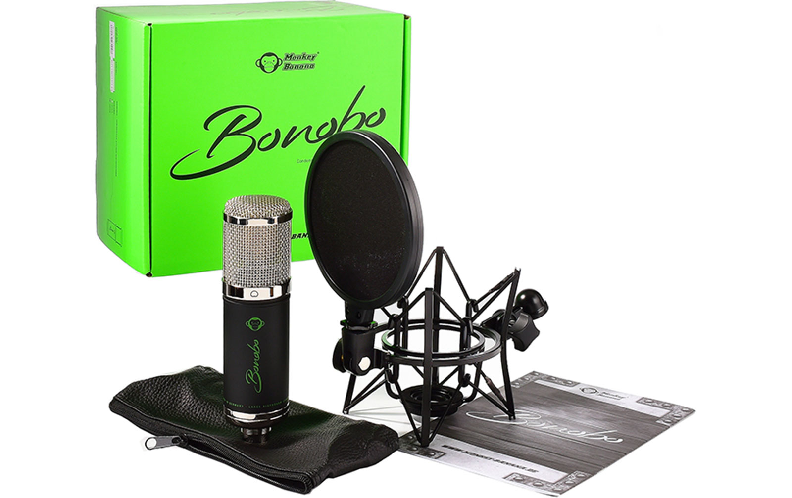 20: Monkey Banana Bonobo schwarz: Das Bonobo Mikrofon von Monkey Banana wurde für Gesangs-, Sprach- und Instrumentenaufnahmen im Tonstudio entwickelt. Speziell Gesangssaufnahmen und akustische Gitarren profitieren vom detailreichen und natürlichen Klang. Im