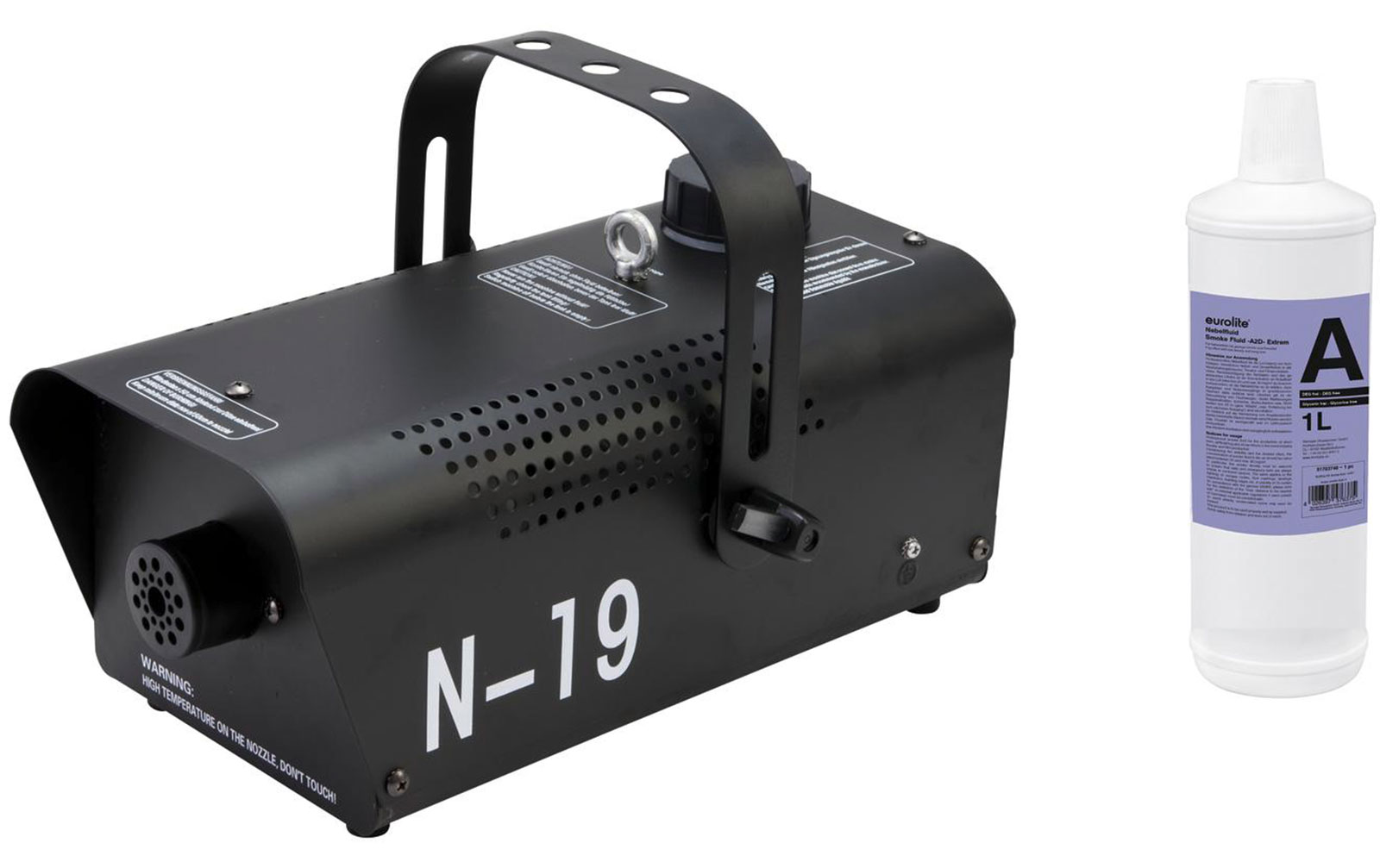 20: Eurolite Set N-19 Nebelmaschine schwarz + A2D Action Nebelfluid 1l: Set bestehend aus:1x 5170195A: EUROLITE N-19 Nebelmaschine schwarz1x 51703740: EUROLITE Smoke Fluid -A2D- Action Nebelfluid 1l5170195A Eurolite N-19 Nebelmaschine schwarz Party-Nebelmasch
