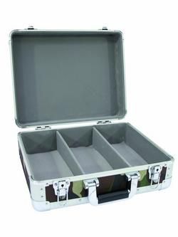 20: Roadinger CD-Case ALU Digital-Booking abgerund camo: Features: Hochwertige Verarbeitung mit 3,0 mm WandstärkeZweiteilig mit 2 AushängescharnierenAußendesign camoInnenfarbe grauMit 8 Gummifüßen (4 unten/4 hinten)Aluwinkelprofil 35 mm (abgerundet)Mit