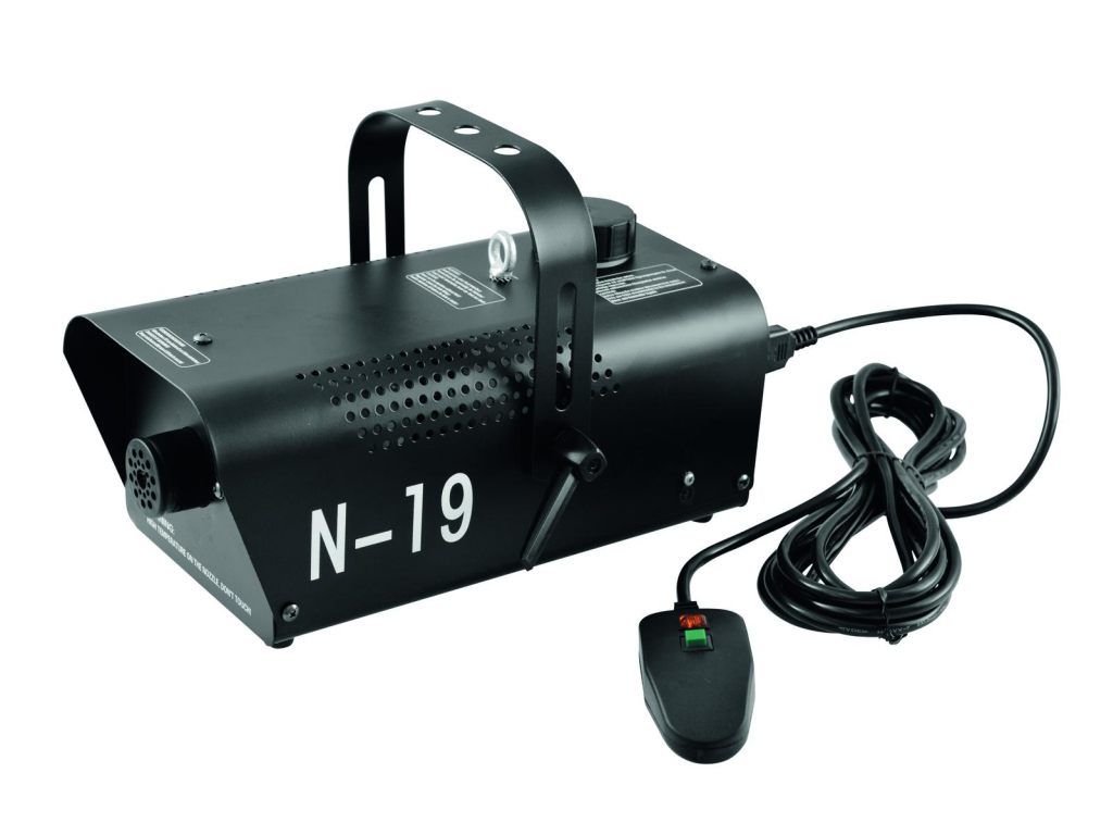 20: Eurolite N-19 Nebelmaschine schwarz: Features:Nebelmaschine für kleine Partyräume ON/OFF-FernbedienungFernbedienungsanschluss über 3-polige KaltgerätebuchseMit HängebügelQualitätsthermostatÜberhitzungsschutzschalter Technische Daten:Spannungsverso