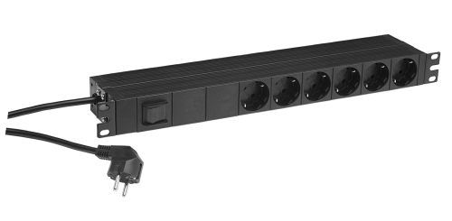··· Stabiles Alu-Gehäuse 1 HE, nur für Wechselspannung. Stromversorgung 16 A 230 V~ mit Netzschalter und je 6 Steckdosen auf der Front- und Rückseite, 2 m Schuko-Anschlusskabel. Mit CE-Kennzeichnung.