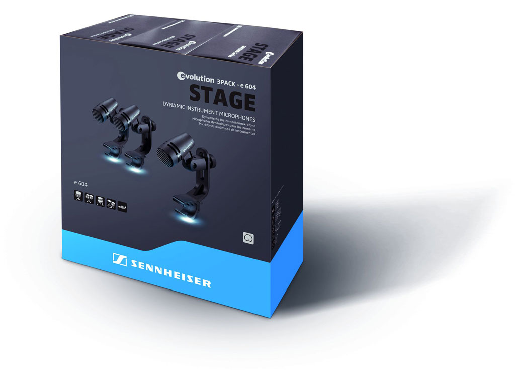 Sennheiser E 604 3er Pack: Features: Glasfaserverstärktes, robustes Kunststoffgehäuse Unempfindlich gegen Tritt- und Körperschall Höchster Schalldruck (über 160 dB) wird verzerrungsfrei übertragen Sehr geringes Eigenrauschen Brummkompensationsspule