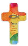··· Buntes Kreuz für Kinder mit einem Edelstahlfisch Material: Buchenholz Edelstahl Form: Rechteckig mit abgerundeten Kanten Größe des Kreuzes: 18 x 11 x 1,5 cm Farbe: Weiss Bunt Text: