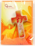 ··· Neutrale Karte mit bunt bedrucktem Holzkreuz Engel Doppelkarte mit farbigem Kuvert Format: 17 x 12 cm Kein Text auf der Innenseite Holzkreuz → Material: Buchenholz → Grö&s