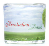 ··· Glaswindlicht Herzlichen Dank mit bunter Papierbanderole bedruckt Material: Glas Verarbeitung: Handgefertigt, mit farbigen Pergamentumleger mit Motiv und Spruch Größe: → Hö