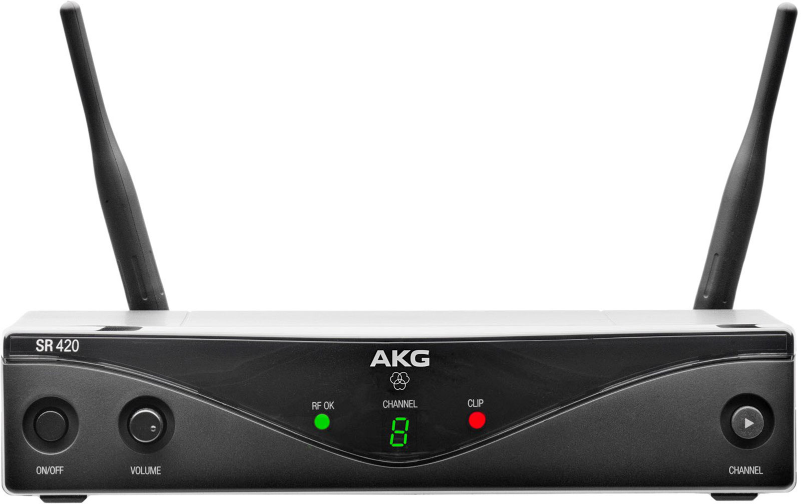 ··· Empfänger für das AKG WMS420 Funksystem. Dank Plug´n´Play ist der SR420 einfach zu bedienen. Absetzbare Antennen sorgen für einen sicheren Empfang.