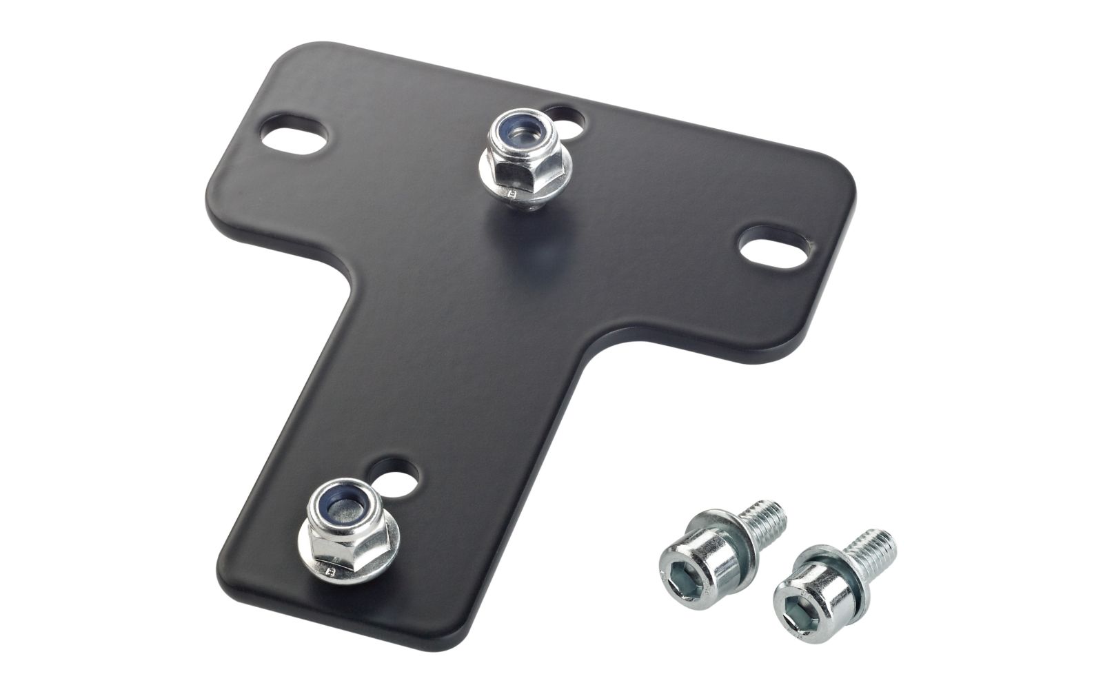 20: K&M 24359 Adapterplatte 6, schwarz: T-Halteplatte horizontal / vertikalFeatures:Aufnahmeplatte: 90 x 100 mm Ausführung: schwarz Besonderheit: Befestigungslochbild: 70 bis 76,2 mm - M6 inklusive Befestigungsschrauben fu¨r Genelec 8000er Serie Gewicht: 0