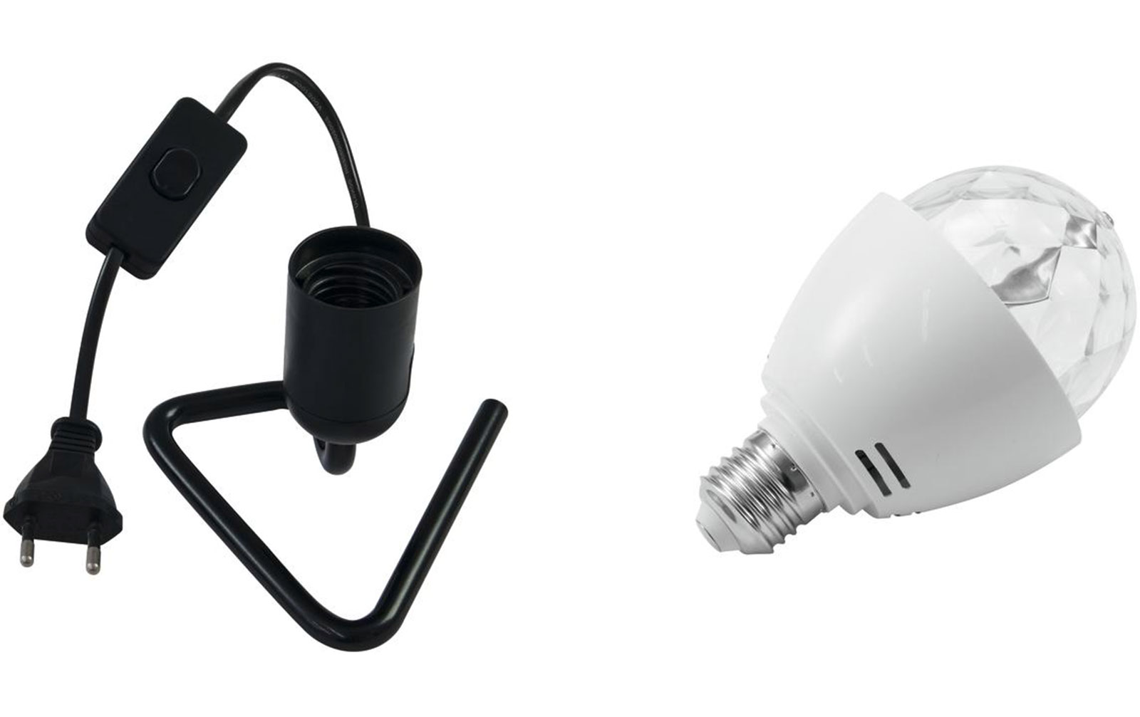 Eurolite Set LED BC-1 RGB + Triangle Fassung schwarz: Set bestehend aus:1x 51918801: OMNILUX LED BC-1 E-27 Strahleneffekt RGB 1x 51100640: EUROLITE Triangle Fassung schwarz51918801 OMNILUX LED BC-1 E-27 Strahleneffekt RGB Disco-Effektleuchte Rotierendes D