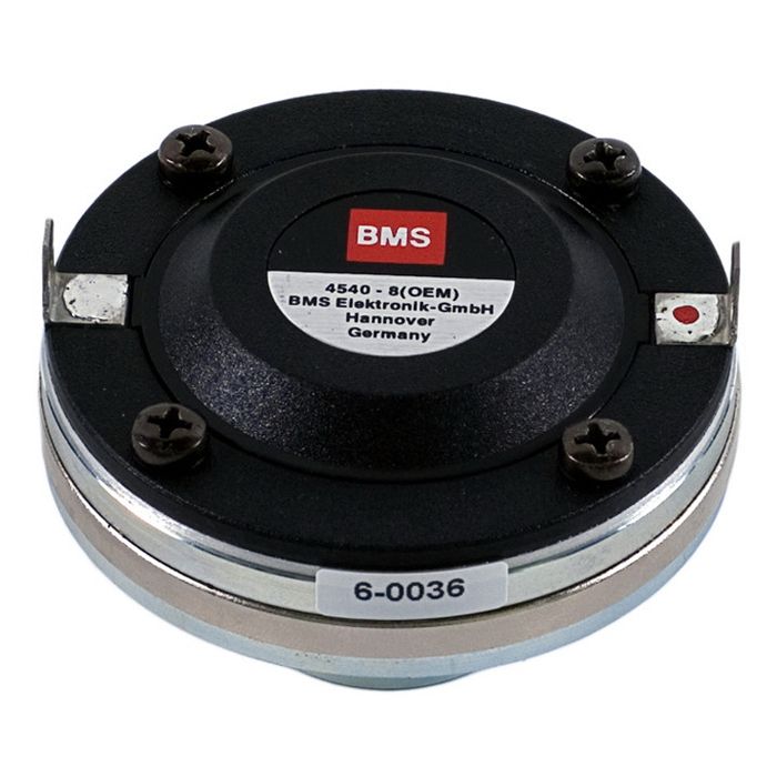 20: BMS 4540 NDL: Features: Unique Patented DesignNeodymium Magnet Assembly114 dB Sensitivity 1 W / 1 mExtended high frequency response up to 30 kHzVery small Size and low Weight38 mm Voice Coil1 3/8` - 18N Screw or 1` Flange Adapter BMS 4540ND is a powerful
