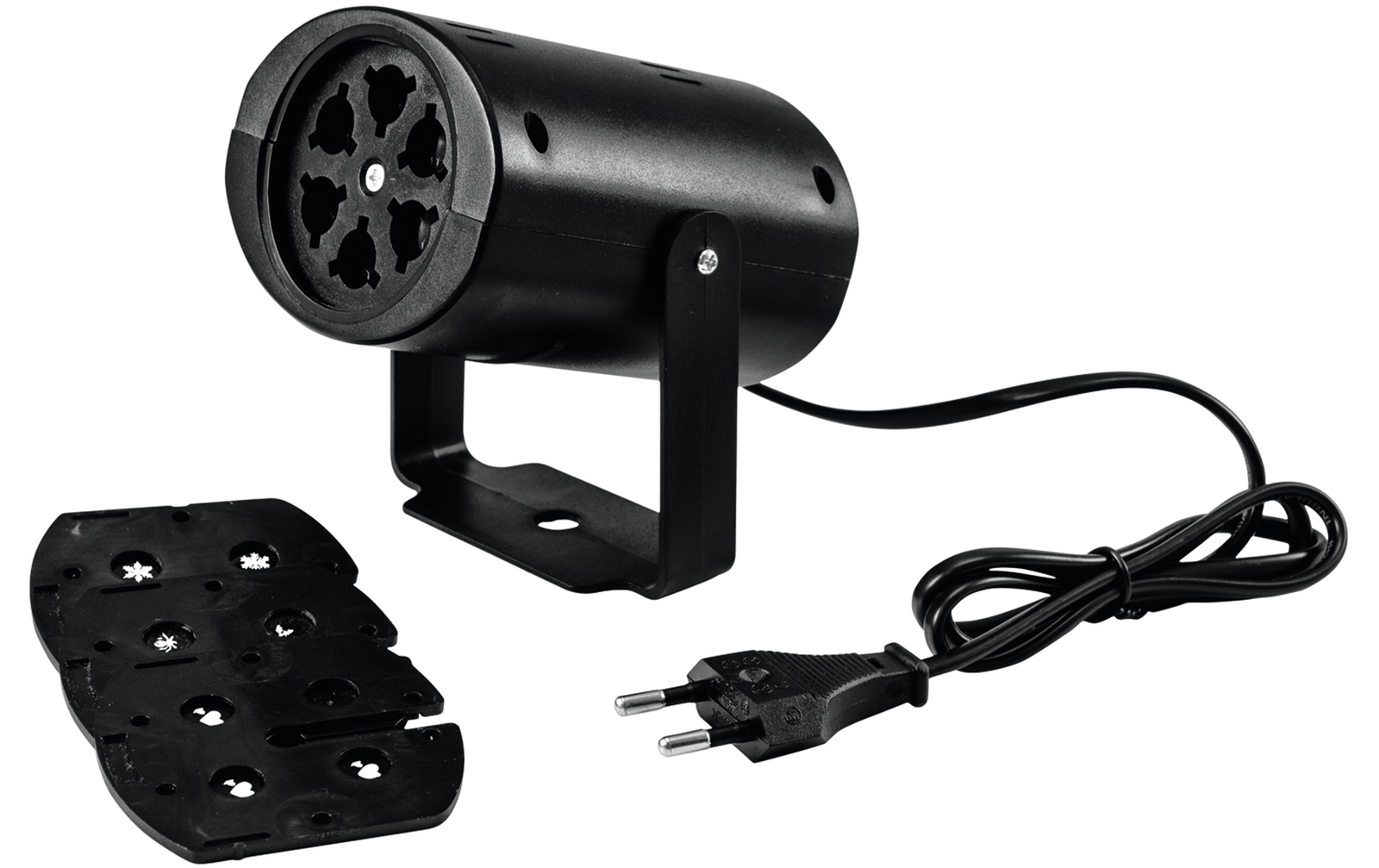 20: Eurolite LED LP-4 Party-Logo-Projektor: Features:Handlicher LED-Projektor mit rotierender Motivscheibe Wirft ein dekoratives Licht an Wände und Decken 4 helle Farb-LEDs (RGBW) sorgen für tolle Lichtspiele Inkl. 4 wechselbare Motivscheiben: Halloween, Wi