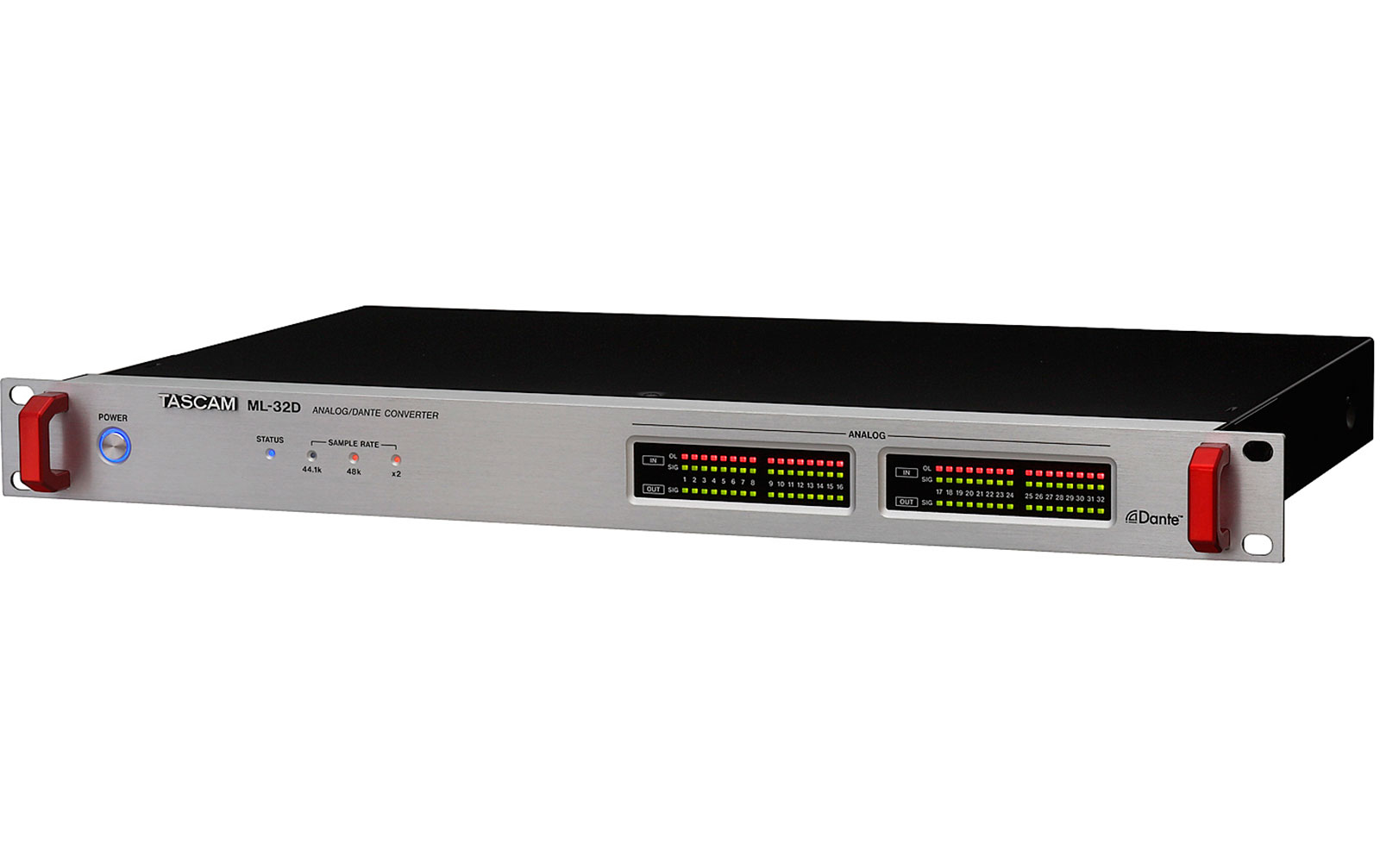 20: Tascam ML-32D: ML-16D und ML-32D sind kompakte, hochwertige Analog-Dante-Analog-Wandler für die bidirektional Übertragung von 16 oder 32 analogen Audiokanälen über ein Dante-Netzwerk. Sie verfügen über platzsparende 25-polige Sub-D-Anschlüsse, die