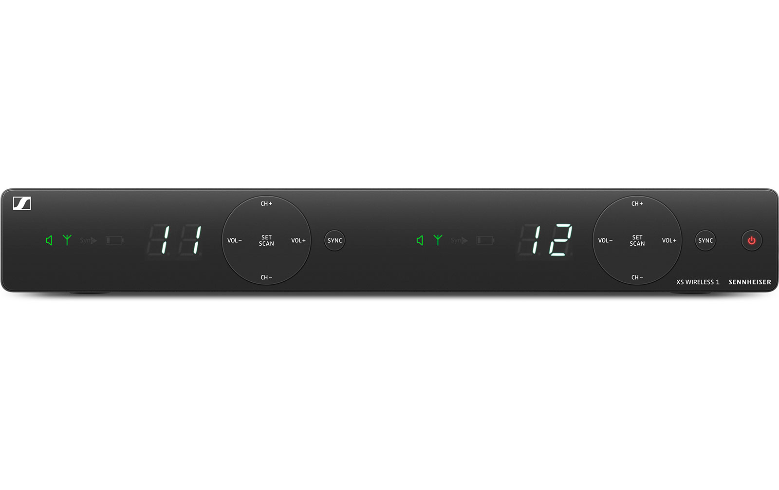 20: Sennheiser XSw 1 Dual Empfänger A-Band (548 - 572 MHz): XS Wireless 1 DUAL ist ein drahtloses Zweikanal-Mikrofonsystem für Gesang und Präsentationen. Herzstück des analogen UHF-Drahtlossystems ist der Zweikanalempfänger EM-XSW 1 DUAL mit eingebauten