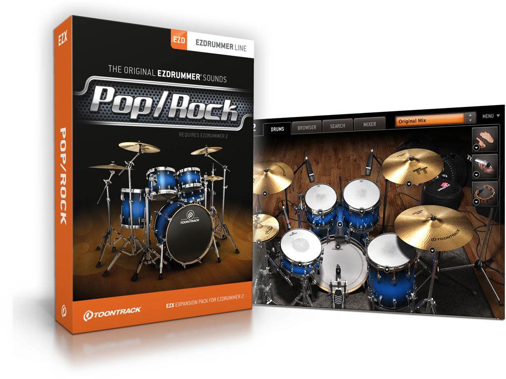 ToonTrack Pop/Rock EZX: Diese EZX Library bietet die originalen Sounds der internen Pop/Rock Werks-Library des EZdrummer 1, aufgenommen und produziert von Pat Thrall (Kate Perry, Beyoncé) und Neil Dorfsman (Bruce Springsteen, Dire Straits, etc.) in den N