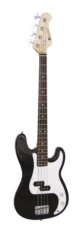 20: Dimavery PB-320 E-Bass, schwarz: Features: Farbe: schwarzKonstruktion: geschraubter HalsKorpus: LindeHals: AhornGriffbrett: Palisander, 21 BündePickups: 1 x Split Single CoilsRegler: 1 x Volume, 1 x ToneBrücke: Classic JB-StyleHardware: verchromtInstrum