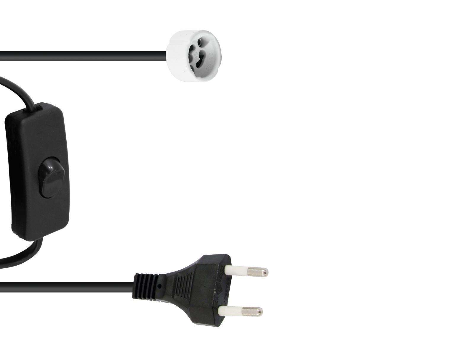 20: Eurolite GU-10 Fassung Netzkabel Stecker Schalter: Features:GU10-Fassung 180-cm-Netzkabel H05VVH2-F 2x0,75mm² Einpoliger Kabel-Netzschalter Technische Daten:Farbe: Schwarz Sockel: GU10 Gewicht: 0,24kg Gesamtanschlusswert: 50W Unterliegt ökodesign: Ja En