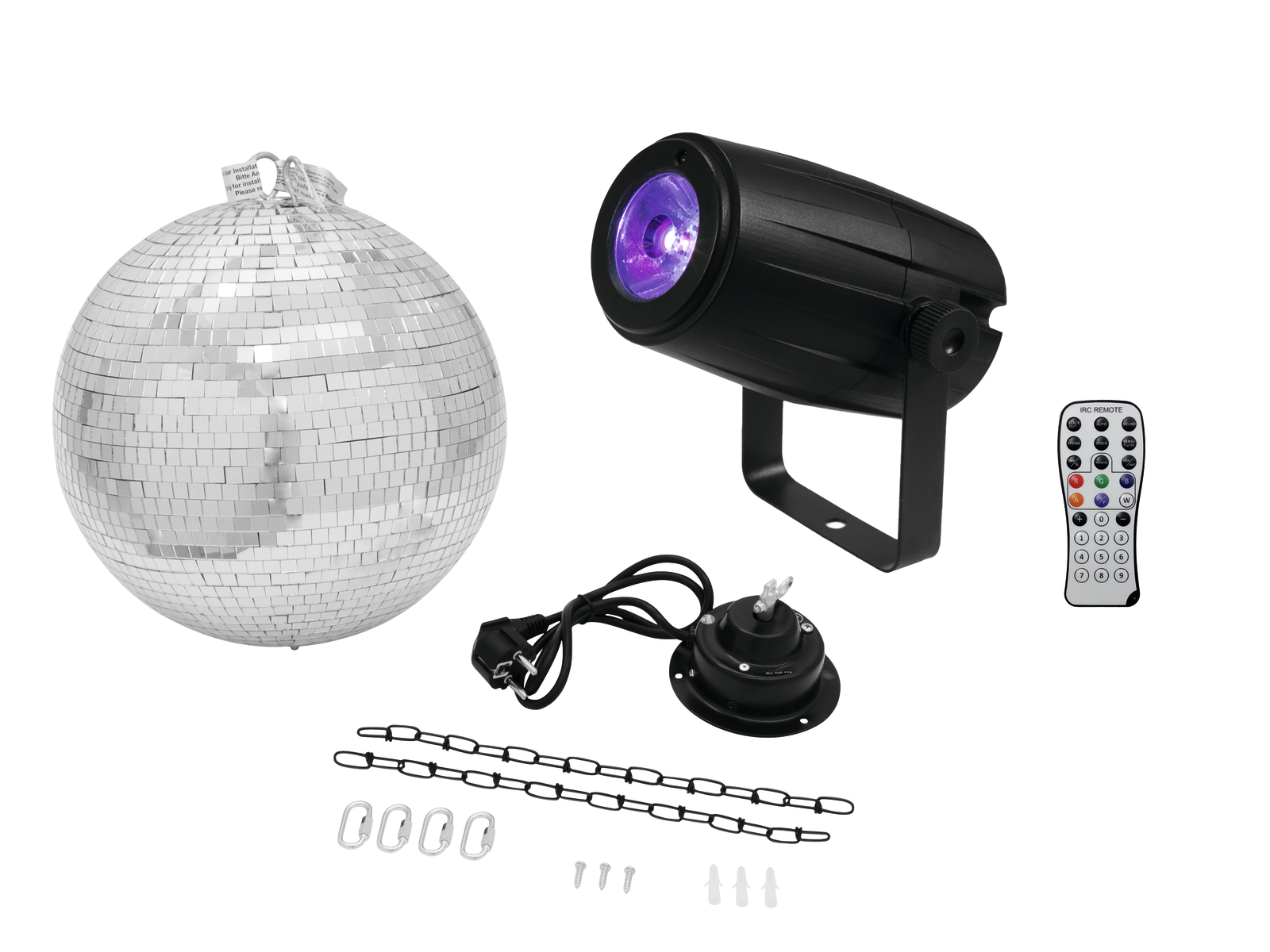 Eurolite Set Spiegelkugel 30cm mit Motor + LED PST-5 QCL Spot sw: Features:Gewicht: 3,15 kgLicht, Effekte & Video > Lichtsets