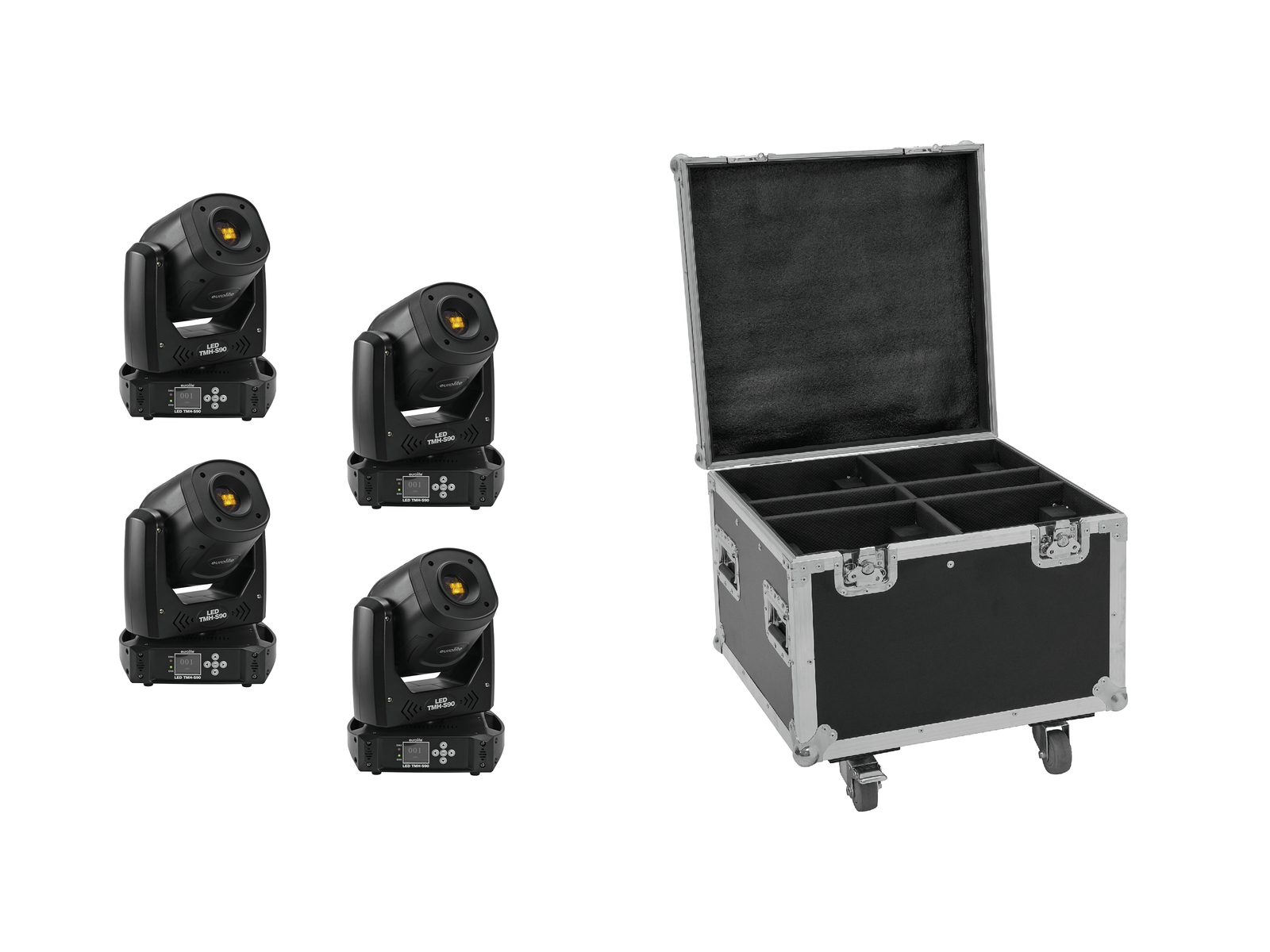 Eurolite Set 4x LED TMH-S90 + Case: Set bestehend aus:4x 51786075: EUROLITE LED TMH-S90 Moving-Head Spot1x 31001078: ROADINGER Flightcase 4x TMH-S90Features:51786075 Eurolite LED TMH-S90 Moving-Head Spot LED-Moving-Head Spot mit Farbrad, statischem und ro